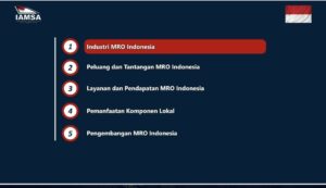 Aryan Chandra Budiman, Wakil Sekjen IAMSA memaparkan kinerja industri MRO (Maintenance, Repair dan Overhaul), tantangan yang dihadapi serta peluang dan pengembangan. IAMSA juga menekankan dukungan yang diperlukan dari para pemangku kepentingan untuk meningkatkan kinerja industri khususnya MRO.